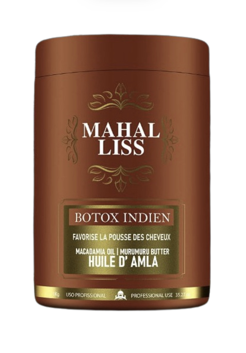 le Botox Indien a l'huile d'Amla et à l'huile de Ricin Mahal Liss® est un soin capillaire professionel qui a pour but de soigner les cheveux fragilisés par les traitements chimiques et redonner brillance et vie a votre chevelure.
